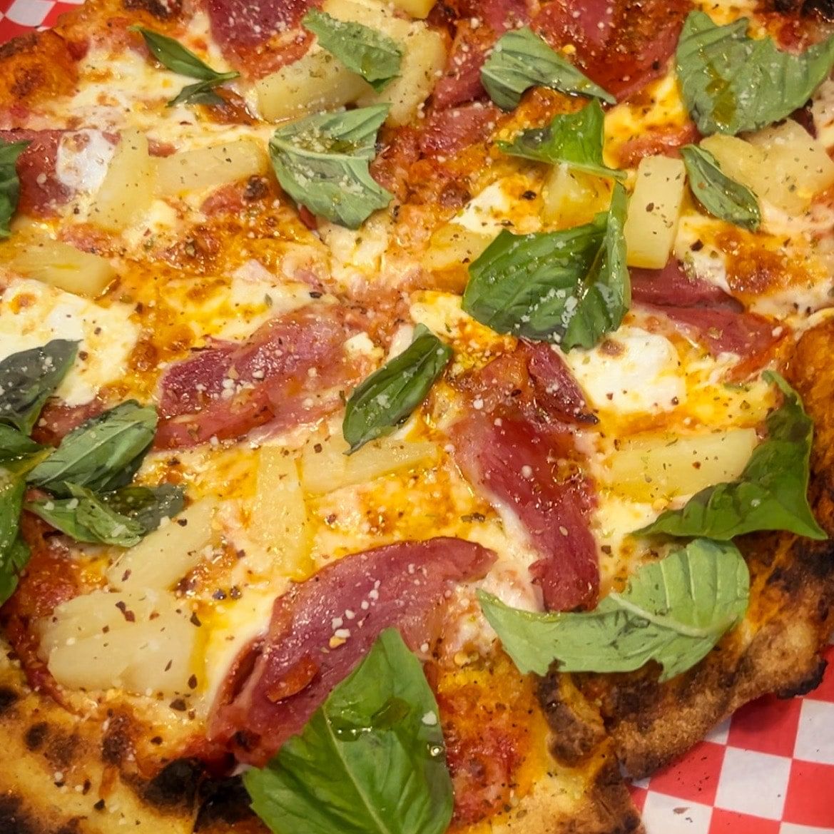 Hot capocollo, pineapple, garlic, mike’s hot honey, side of BBQ sauce